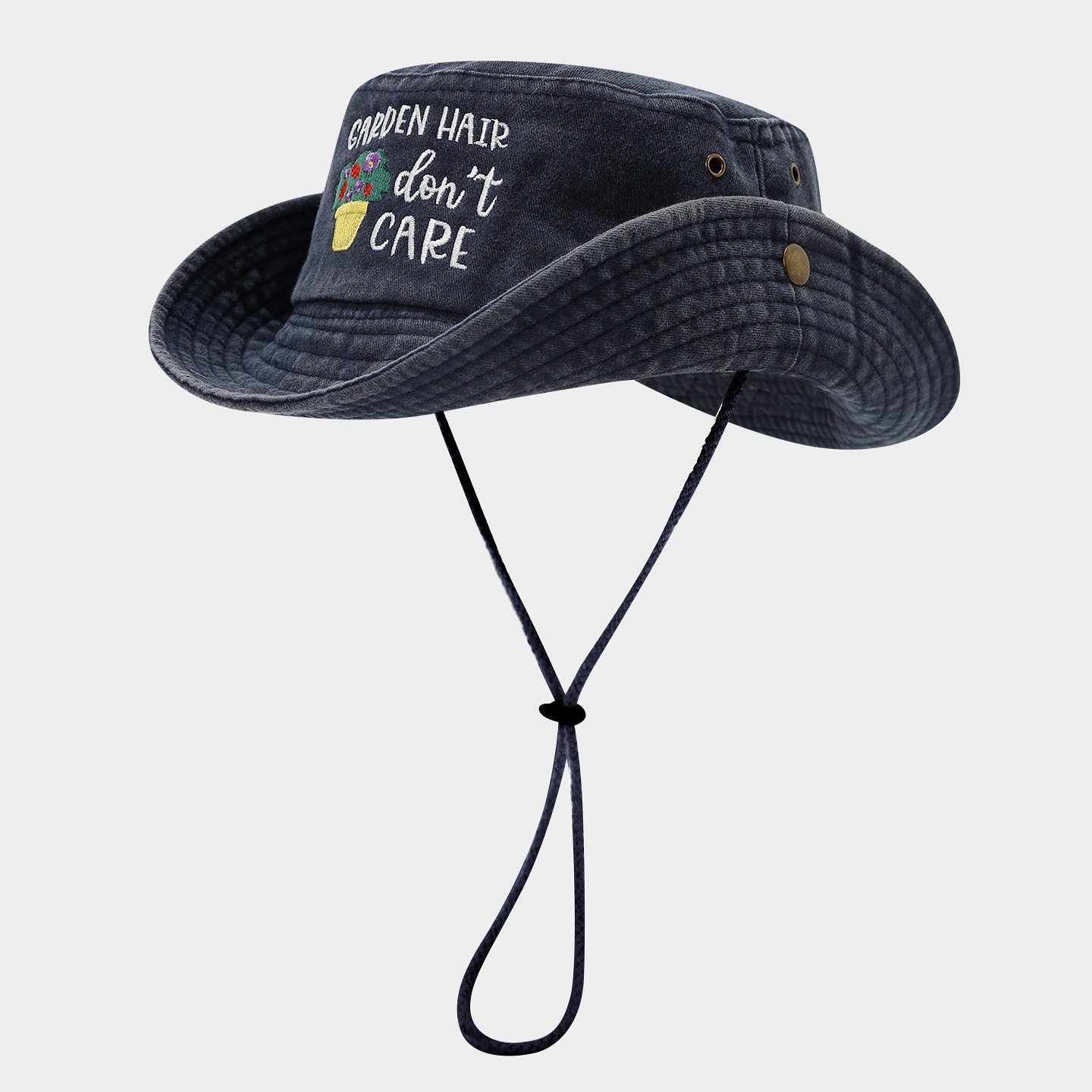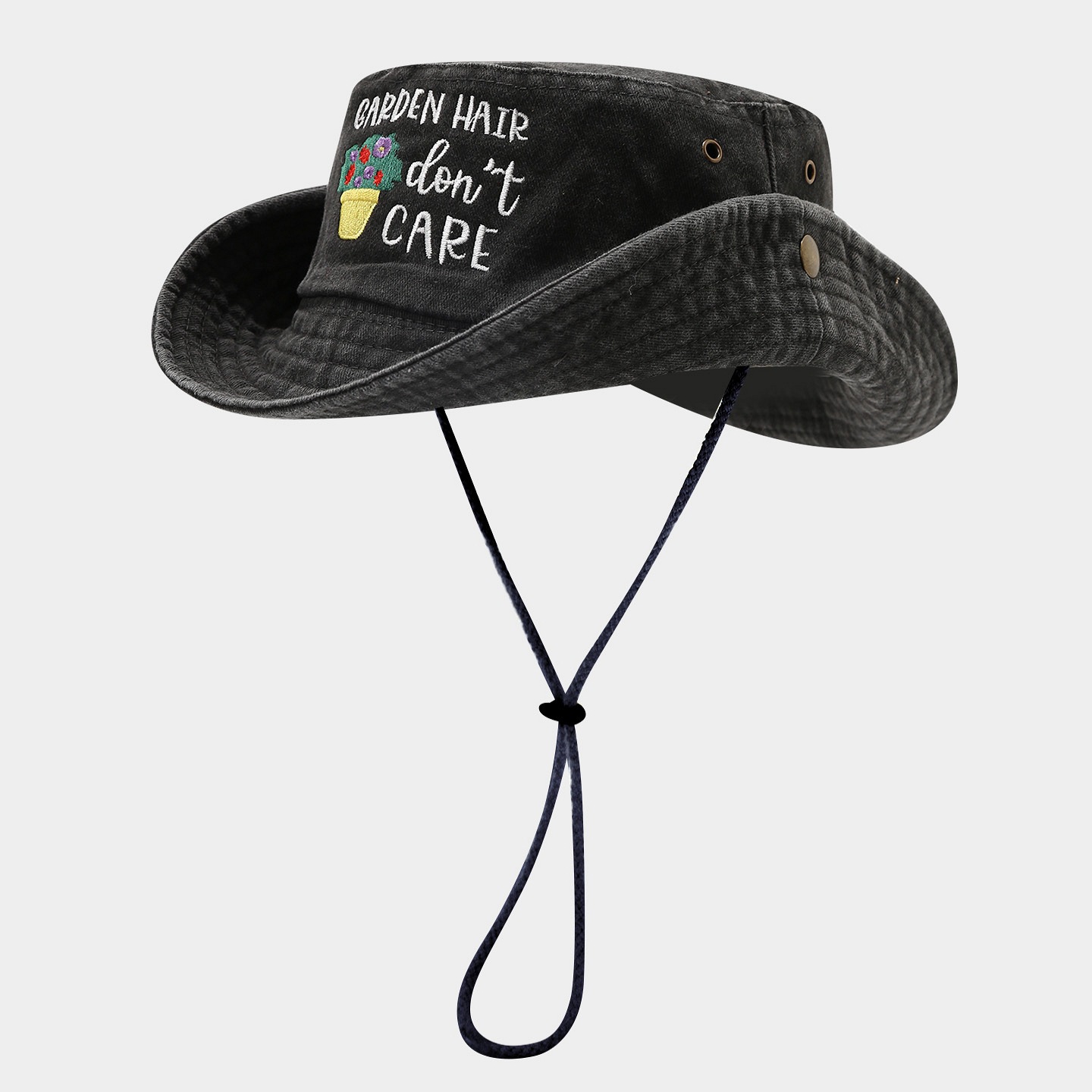 '' GARDEN HAIR don’t CARE'' Embroidered flower pot & lettering, durable and stylish